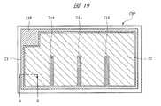 そこで、本実施の形態1では、図19に示すようなゲートフィンガー構造を採用する。すなわち、チップ領域CHPに沿って形成されたゲート配線21と一体に形成されたゲートフィンガー部(第2電極、第2部)21Aを設けるものである。なお、ゲート配線21およびゲートフィンガー部21Aと共に、ゲート配線21Bも一体に形成されている。ゲートフィンガー部21Aは、平面でゲート配線21からチップ領域CHPの内側へ向かって延在し、その下部には、ゲート電極10と電気的に接続する多結晶シリコンパターン11(図9参照)が配置されている。また、図示は省略するが、ゲートフィンガー部21Aは、ゲート配線21と同様に、絶縁膜16に開口されたコンタクト溝18(図9参照)を埋め込むように形成され、コンタクト溝18の底部で多結晶シリコンパターン11と接している。また、ゲートフィンガー部21Aは、ゲート配線21と一体に形成されていることから、Al膜を主導電層とする金属配線となる。このようなゲートフィンガー部21Aを設けることにより、多結晶シリコンパターン11をゲート配線21下まで延在させる代わりに、多結晶シリコンパターン11より抵抗率の低い金属配線であるゲートフィンガー部21Aを多結晶シリコンパターン11上まで延在させることになる。その結果、多結晶シリコンパターン11をゲート配線21下まで延在させる場合に比べて、上記ゲート抵抗Rgを低減することができる。なお、図19中のB−B線に沿った断面は、図9に示した断面図となる。  Therefore, in the first embodiment, a gate finger structure as shown in FIG. 19 is adopted. That is, a gate finger portion (second electrode, second portion) 21A formed integrally with the