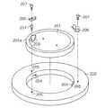 そして、これらのボルト207の締め付けにより、光学素子201の外周フランジ部201aが各クランプ部材206と座面204との間で挟み込まれる。これにより、光学素子201が枠体202内で所定位置に保持されるようになっている。