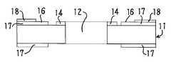 次いで、電気的に接続するワイヤーボンディング接続用端子部16,16やはんだ接続用ランド上にニッケルと金または銀による貴金属めっきを行いプリント配線板11を形成する。なお、上記の貫通穴12は穴内壁にめっき膜を形成しためっきスルーホールでもめっき膜のない非めっきスルーホールのどちらでも良い。Further, it is preferable that the