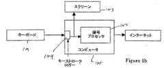 図1a〜図1cは、キーボードロガーまたは同様のプログラムもしくはハードウェアを使って実現され得る身元情報の窃盗問題の例示である。図1aは、キーボード101からの、正常な情報の概略である。情報は、オンラインサービス、たとえば銀行のeコマースサイトの顧客によって使われるコンピュータ105に接続されたスクリーン103上に表示されてもよい。コンピュータ105またはスマートカード(図示せず)内のどちらかにある暗号化プロセッサ107が、インターネット110に送られる前に情報を暗号化してもよいであろう。この暗号化プロセッサ107は、ハードウェア装置でもよく、完全に、コンピュータ105上で実行されるソフトウェアとして実装されてもよい。図1bは、キーストロークロガーソフトウェア109がコンピュータ105上にインストールされている際の情報の流れを示す。キーストロークロガー109は、情報がそれ以外のどこかへ行く前、したがって、既存のセキュリティ機構が適用される前、たとえば、暗号化プロセッサ107が情報を暗号化する機会さえないうちに、ユーザによってキーボード101上でタイプ入力された情報を取り込む。図1cは、ハードウェアキーストロークロガー111がインストールされているときの構成および情報の流れを示す。ハードウェアキーストロークロガー111は、キーボード101とコンピュータ105の間にある。あるいは、ハードウェアキーストロークロガー111は、キーボード111の中に構築されてもよい。どちらのケースでも、情報は、コンピュータ105に入る前に取り込まれる。  FIGS. 1 a-1 c are illustrative of identity theft issues that can be implemented using a keyboard logger or similar program or hardware. FIG. 1 a is a schematic of normal information from the