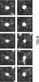 〔相同気管支候補の検出〕:検出は、幾つかの所与の血管中心線点に関して、初期候補群として、上述された血管の位置付けを推定することによって開始される。仮に、rvesを中心線点での局部血管半径とする。式(3)のガウス重み関数に関してσ=rves/2が使用される。血管の位置付けに対する面法線は、トリリニアに再サンプリングをなされる。8rves×8rvesの領域をカバーする例となる64×64画素から成る2次元正方形画像Iは、その中心で血管中心線点により抽出される。2次元断面は、σ=rves/4を有するガウスフィルタによって平滑化される。幾つかの例が図9に示される。図9は、2つの異なる例となる血管の断面を示す。5つの断面が、2つの例となる血管の夫々に沿って1mm刻みで示される。低減された候補群の気管支候補は白十字の印を付されている。図9の上にある5つの断面は、半径3mmの動脈を示す。留意すべきは、候補群がこの場合には誤った構成要素を含まない。明らかなように、相同気管支は正確に識別されている。このセグメントの推定される動脈らしさは0.98である。図9の下にある5つの断面は、半径3mmの静脈である。留意すべきは、スライスの夫々に関し多数の候補点が存在する点である。これは、初期候補群から低減された異常値群へと至る低減ステップにおいて、「異常値(outlier)」となりうる目下の高いヘッセン値を有する気管支は存在しないという事実に起因する。このセグメントに関する動脈らしさは0.28である。[Detection of homologous bronchial candidates]: Detection is started by estimating the above-mentioned vascular positioning as an initial candidate group for several given vessel centerline points. Let rves be the local blood vessel radius at the centerline point. Σ = rves / 2 is used for the Gaussian weight function in equation (3). The surface normal to vessel positioning is resampled trilinearly. A two-dimensional square image I composed of 64 × 64 pixels, which is an example covering an 8rves × 8rves region, is extracted by a blood vessel center line point at the center thereof. The two-dimensional section is smoothed by a Gaussian filter with σ = rves / 4. Some examples are shown in FIG. FIG. 9 shows cross sections of two different example blood vessels. Five cross sections are shown in 1 mm increments along each of the two example vessels. Candidate bronchial candidates in the reduced candidate group are marked with a white cross. The five cross-sections at the top of FIG. 9 show an artery with a radius of 3 mm. Note that the candidate group does not contain a false component in this case. As can be seen, homologous bronchi are correctly identified. The estimated arterialness of this segment is 0.98. The five cross sections at the bottom of FIG. 9 are veins with a radius of 3 mm. It should be noted that there are a large number of candidate points for each of the slices. This is due to the fact that in the reduction step from the initial candidate group to the reduced abnormal value group, there is no bronchi with a current high Hessen value that can be an “outlier”. The arterialness for this segment is 0.28.