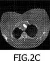 実際の血管樹抽出が行われる前に、肺は前処理ステップでデータセットから分割される。これは、血管樹分割のための探索空間を減らす。最初に、気管が自動で検出される。この目的のために、MSCTデータセットにおける下行大動脈の検出のための技術が使用される。作業は、副標本をとられた形式のデータセットで実行される。x、y及びz方向における5のサブサンプリングレート(副標本化率)が使用される。−600HUの好ましい閾値が適用され、「ブラックエリア」(ハウンズフィールド値<−600HU)は、10から30mmの間にあるx方向の範囲と、10から50mmの間にあるy方向の範囲とを有することを検出される。このようにして得られる候補点はクラスタ化され、z方向で最も発現した位置付けを有する点クラスタの重心は、最も有望な気管シード候補として選択される。その結果として図2A〜2Cを参照せよ。この手順は、これまで試験されたデータセットの全てにおいて正確に、図2A〜2Cで断面によって示される気管を見つけた。 Before actual vessel tree extraction is performed, the lungs are segmented from the data set in a preprocessing step. This reduces the search space for vessel tree segmentation. First, the trachea is automatically detected. For this purpose, techniques for detection of the descending aorta in the MSCT data set are used. The work is performed on a data set in a subsampled form. A subsampling rate (subsampling rate) of 5 in the x, y and z directions is used. A preferred threshold of −600 HU is applied, and the “black area” (Hounsfield value <−600 HU) has an x-direction range between 10 and 30 mm and a y-direction range between 10 and 50 mm. Be detected. The candidate points obtained in this way are clustered and the centroid of the point cluster with the most expressed positioning in the z direction is selected as the most promising trachea seed candidate. As a result, see FIGS. This procedure found the trachea shown by the cross sections in FIGS. 2A-2C accurately in all of the data sets tested so far.