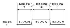 図4は、ラッチ回路1の第1の制御例を示す。スイッチング制御回路41は、ラッチ回路1の動作周波数がf1からf2へ切り替わると、制御信号s1の論理レベルを“H”に設定してスイッチング素子をオン状態に制御する。一方、ラッチ回路1の動作周波数がf2からf1へ切り替わると、制御信号s1の論理レベルを“L”に設定してスイッチング素子をオフ状態に制御する。これにより、例えば、ラッチ回路1がデータの安定保持よりも動作速度が要求される用途で動作する動作周波数f1の期間は、スイッチング素子をオフ状態にして高速動作を実現する一方、動作速度よりもデータの安定保持が要求される用途で動作する動作周波数f2の期間は、スイッチング素子をオン状態にしてデータを安定的に保持するといった制御が可能となる。(First control example)