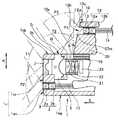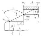 そこで、図34や図4に示すように、第1の先端面10sにおける側方照明用レンズ6と第1の前方照明用レンズ12との間の領域に傾斜面を形成した。このことによれば、図33に示す第1の先端面10sにおける側方照明用レンズ6と第1の前方照明用レンズ12との間の領域が平坦面に形成された場合よりも、端部5tにおいて外周側面1vgと仮想線Qとで形成する角度を大きくすることができる(β<γ)。 Therefore, as shown in FIGS. 34 and 4, an inclined surface is formed in a region between the