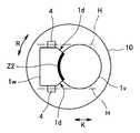 突出部1は、略円柱形状を有する第1の突出部1vと、該第1の突出部1vに対して先端部10の径方向Kにおいて並んで位置する多角柱形状を有する第2の突出部1wとから、断面略8の字状に形成されている。 The protruding portion 1 includes a first protruding