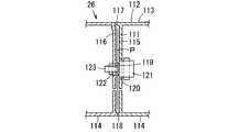 次に、図8に紙幣搬送路26を示す。紙幣搬送路26は、紙幣の搬送をガイドするガイド溝111を形成したガイド体112を有し、このガイド体112は、機体11に固定的に設けられる固定ガイド113と紙幣詰まりの解消などのために固定ガイド113に対して開閉可能とする開閉ガイド114,114とで構成されている。  Next, thebanknote conveyance path 26 is shown in FIG. Thebanknote transport path 26 has aguide body 112 formed with aguide groove 111 that guides the banknote transport, and theguide body 112 is provided for fixing the fixedguide 113 provided on themachine body 11 and for eliminating banknote jams. And open /close guides 114 and 114 that can be opened and closed with respect to the fixedguide 113.