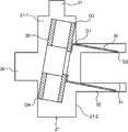 このような楔面部25−1,25−2を設ければ、前記スラスト力などによりインペラ20がケーシング側板21−1,21−2に近づいたときに、このインペラ20と楔面部25−1,25−2との隙間に流入した液体による楔効果が生じるため、両者の接触を防ぐことができる。  If the wedge surface portions 25-1 and 25-2 are provided, when the