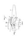 旋回翼130は、図1に示すように、燃料ノズル110の周方向に沿う複数箇所に配置されて、燃料ノズル110の軸方向に沿い伸びて配置されている。各旋回翼130は、空気通路111を流通する圧縮空気Aに旋回力を付与して、この圧縮空気Aを旋回空気流aにするものである。このため、各旋回翼130は、圧縮空気Aを旋回させることができるように、上流側から下流側に向かうに従い次第に湾曲している(周方向に沿い傾いている)。  As shown in FIG. 1, the