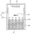 第5実施形態では、坩堝1内のうちもっとも外側に配置された孔付パイプ10の他端が坩堝1の中心軸側に直角に折り曲げられたものが示されているが、これは一例を示すものであって、他の場所に配置された孔付パイプ10の他端が折り曲げられていても良い。また、孔付パイプ10の他端を折り曲げる角度や向きも自由に設定可能である。  In the fifth embodiment, the other end of the