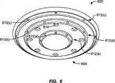 [0025]図6は、本発明の実施形態に従う三段型ガス分配装置600を図示する。ガス分配装置面604は、段部612(a)−(c)を含み、各々は、それぞれ、一組のアパーチャ610(a)−(c)を備える。三つの段部は、ガス分配の高度な改良の為に3つの制御領域を提供する。さらに、各アパーチャの長さが短いため、アパーチャ612の径は、高度な分配制御の為に減じられている。一つの特定実施形態において、ガス分配装置600は、2つの単体プレナムである。本発明の他の実施形態は、4つ、5つ、6つ、又はそれ以上の段部を含んでもよいことに留意されたい。  [0025] FIG. 6 illustrates a three-stage