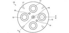 振動伝達部12は、振動部11から生じた振動を積層体22に伝達するものであり、内部に空洞部13を有する筐体である。空洞部13は、溶解液注入口16を中心としていわゆるドーナツ状に形成されており、振動伝達部12において振動部11の下には空洞部13が位置するようになっている。そして、空洞部13中には、液体が充填されている。振動伝達部12の内部の空洞部13に液体が充填されていることによって、振動部11からの振動は液体中において拡散される。したがって、振動部11からの振動をより広範囲に伝達することが可能である。(Vibration transmission part 12)