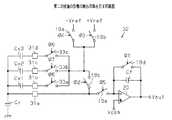 前記フィルター16aの出力信号はコンパレータ(第一のコンパレータ)17aに入力され、前記フィルター16bの出力信号はコンパレータ(第二のコンパレータ)17bに入力される。コンパレータ17a,17bは、図3に示すように、前記フィルター16a,16bから出力される後記検出電圧Vc1,Vc2をそれぞれしきい値Vth1,Vth2(Vth2:第一のしきい値、Vth1:第二のしきい値)とそれぞれ比較して、検出電圧Vc1,Vc2の電圧レベルがしきい値Vth1,Vth2を超えると、Hレベルの出力信号を出力する。  The output signal of the