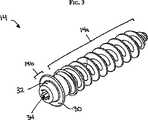 図18は、脊柱の一方の側に位置付けられた1本のテザー50を図示しているが、矯正しようとする奇形によっては、複数のテザーを使用することもできる。前述したように、テザーは、好ましくは、奇形した脊柱の湾曲部の凹状側に位置付けら、これにより、奇形の凸状側での成長を止める。したがって、脊柱が複数箇所で湾曲している場合には、複数のテザーを使用することがある。たとえば、3つの脊柱アンカリング装置を脊柱の湾曲の凹状側における矢状面に第1の高さで配置し、3つのさらに別の脊柱アンカリング装置を脊柱の反対側に第2の高さで配置して、その3つの別の脊柱アンカリング装置が脊柱に形成されている第2湾曲部の凹状側に配置されるようにすることができる。このように、テザーは、第1の高さで脊柱アンカリング装置の間に張られるように位置付けられ、第2のテザーは、脊柱の反対側の第2の高さで脊柱アンカリング装置の間に張られるように位置付けられることができる。その後、張力を各テザーにかけることができ、テザーは、前述したように各脊柱アンカリング装置に対して固定することができる。各椎骨間にかける張力は、望まれている矯正によりさまざまである。矯正は、直ちに矯正されるようにテザーを張ることで手術中に行ってもよいし、および/または、テザーを利用して成長を非対称に制限することで矯正を行うように、脊柱を自然に成長させることで行うこともできる。矯正が達成されたら、選択的に、テザーを切断し、1つ以上の段階で張力を緩めることができる。ある実施形態では、テザーを低侵襲性手技で切断することができる。テザーを切断することは、過矯正を防止するのに特に有益である。  Although FIG. 18 illustrates a