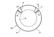 図4から図6までに見られるように、上記の後部分10Rは内壁35と外壁36とからなり、これらは平行で、環状間隙の形態の空間37により相互から離れている。この空間には、上記の内壁35と外壁36とに固定され、空間37を細分する曲がったダクト40を形成する枠38(図5)あるいは枠39(図5)とが位置する。これらのダクト40はナセルの軸L−Lに対し横断方向であり、上記の後部分10Rに沿って分布されている。  As can be seen in FIGS. 4 to 6, the