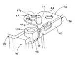 第1,第2係合部32,33は、プリント基板20の側部22,23への係合時に当該プリント基板20の側面に当て止められる脚部32k,33kをそれぞれ備え、これら脚部32k,33kの先端には、プリント基板20の上面20aに係止される係止爪32j,33jが一体的に形成されている。尚、プリント基板20の上面20aと下面20bとは互いに平行である。
