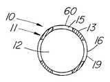 図19から図21は、弾性把持部材13を含む第1の材料40の連続体が、細長部材11の近位部分21にある他の材料66と相互接続する複数の強化ワイヤ31を含む。例示的実施態様では、回収装置10は、壁16に入れた平坦な弾性金属またはプラスチックの強化ワイヤ31を有するプラスチック管32を備える。細長部材11の遠位部分37でプラスチック管32の一部を除去することにより、露出した強化ワイヤ31は、拡大形状18に形成した後、弾性把持部材13として機能する。  19 to 21 include a plurality of reinforcing