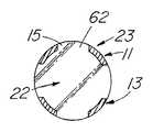 カニューレから作成する以外に、本発明のバスケットおよび把持鉗子は、中実の細長い部材から作成することができる。図5は、中実部材から形成し、楔形の弾性把持部材を有する、図3の代替実施態様の5−5線に沿って切断した細長い円筒形部材11の断面図を示す。図示された楔形の把持部材は、金属カニューレから作成した実施態様と基本的に同じ方法で、細長い部材に2本のスロットを作成して形成することができる。楔形把持部材から作成したバスケットおよび把持器は、標準的な円形または平坦なワイヤであり、米国特許出願第60/078,290号号明細書に記載されたものより小さい直径に圧縮されるので有利である。  In addition to being made from a cannula, the basket and grasping forceps of the present invention can be made from a solid elongate member. FIG. 5 shows a cross-sectional view of the elongated