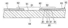 本実施形態において、複数のラインパターン81のそれぞれは同じ幅H2及び同じ長さL2を有している。また、ラインパターン81どうしのそれぞれの間隔もほぼ同じであり、本実施形態では、ラインパターン81どうしの間隔もH2となっている。また、ラインパターン81の幅H2と第1パターン61の幅H1ともほぼ同じとなっている(H1=H2)。一方、第2パターン80を構成するラインパターン81の長さL2は、第1パターン61の長さL1よりも長くなっている。  In the present embodiment, each of the plurality of