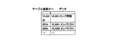 また、テーブル制御部113は、CPU12の指示によりVLANテーブルメモリ114の内容を設定するものである。また、テーブル制御部113は、VLANテーブルメモリ114におけるVIDとVLANメンバ情報をVLANテーブルメモリ115にコピーし、両者のコヒーレンスを保つものである。また、テーブル制御部113は、VLAN  IDをキーとしてVLANキャッシュ115を検索し、VLANメンバ情報とその優先度を得るものである。  The