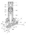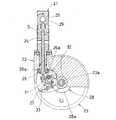 前記操作軸5は、回転しないものとすると共に、バネS2により上方向に常時押圧されつつ、操作レバー12によって回動操作されるカム体11を上端に当接させている。The