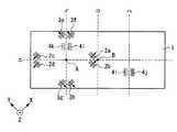 X軸センサ2は、4個の巨大磁気抵抗素子2a、2b、2c、2dから構成され、Y軸センサ3は、4個の巨大磁気抵抗素子3e、3f、3g、3hから構成され、Z軸センサ4は、4個の巨大磁気抵抗素子4i、4j、4k、4lから構成されている。