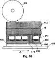 本発明の第三の前面ラミネートはさらに、電気光学媒体層から反対側の接着層に隣接して配置されている剥離シートを備えることができる。導電層から離れている導電性バイアの終端を、剥離シートで覆わない。導電性バイアを、変形可能な材料、例えばポリマーマトリックスに分散している導電性粒子を含む材料から形成することができる。同じ理由から本発明の他の前面ラミネートのように、第三の前面ラミネートはさらに、接続領域内の導電層と重複する導電性材料のコンタクトパッドを備えることもできる。第三の前面ラミネートは任意の前述の種類の固体電気光学媒体を用いているが、一般に、電気光学媒体が電気泳動媒体、望ましくは封止電気泳動媒体であることが好ましい。 The third front laminate of the present invention can further comprise a release sheet disposed adjacent to the adhesive layer opposite the electro-optic medium layer. The end of the conductive via away from the conductive layer is not covered with a release sheet. The conductive via can be formed from a deformable material, such as a material that includes conductive particles dispersed in a polymer matrix. For the same reason, like the other front laminates of the present invention, the third front laminate may further comprise a contact pad of conductive material overlapping the conductive layer in the connection area. The third front laminate uses any of the foregoing types of solid electro-optic media, but it is generally preferred that the electro-optic media be an electrophoretic medium, preferably a sealed electrophoretic medium.
