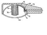 本発明のLEDバルブ68の第2の実施形態は、典型的なコブラ・ヘッド街路灯ヘッド70内で街路灯として使用するために、図8に示される。電球68は、灯器ヘッド(light  head)70に電球68を接続することを可能にするねじ込み式口金インタフェース72を備える。第1の実施形態と同様に、電力/制御セクション74は、ねじ込み式口金72内に含まれる。電気/熱コアおよびLEDアレイは、コブラ・ヘッドの一番上に搭載され、ねじ込み式口金72内で、電力/制御セクション74にワイヤ75によって接続される。電気/熱コア76は、第1の実施形態と同様に配列された密度の高いLEDアレイ78を含む。LED78は、各クラスタ内の48個のLEDの8個のクラスタで配列される。コアは、第1の実施形態と同様に、回路ディスク、金属ディスク、および絶縁体ディスクで構築される。コブラ・ヘッド70が、拡散器カバー80を備えるため、LEDバルブ68用の別個の拡散器は必要とされない。  A second embodiment of the
