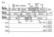 IEEE802.11n以前の規格では、単一のMPDU(MACフレーム)を送信していたのに対し、IEEE802.11nでは、複数のMPDUを1つのフレームに結合してA−MPDUフレームを作成し、このようなA−MPDUフレームにより複数のMPDUを同時に送信している。このとき、各MPDUの先頭にはMPDUデリミタを付加し、MPDUデリミタ内のMPDU長(MPDU Length)フィールドに、直後に結合したMPDUのフレーム長を記載して各MPDUを分離する際の識別子としている。 In the standard before IEEE802.11n, a single MPDU (MAC frame) was transmitted. In IEEE802.11n, multiple MPDUs were combined into one frame to create an A-MPDU frame. A plurality of MPDUs are transmitted simultaneously using such an A-MPDU frame. At this time, an MPDU delimiter is added to the head of each MPDU, and an MPDU length field in the MPDU delimiter describes the frame length of the MPDU combined immediately after that to serve as an identifier for separating each MPDU. .