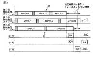 例えば、図3に示すように第二の無線通信ストリームに対して送信するフレームf2の送信時間が最も長くなる場合、すなわち、第一の無線通信ストリームに対して送信するフレームf1の送信時間及び第三の無線通信ストリームに対して送信するフレームf3の送信時間が第二の無線通信ストリームに対して送信するフレームf2の送信時間よりも短い場合には、第二の無線通信ストリームに対して送信するフレームf2の送信時間(T2)が取り出される。For example, as shown in FIG. 3, when the transmission time of the frame f2 transmitted to the second wireless communication stream is the longest, that is, the transmission time of the frame f1 transmitted to the first wireless communication stream and the first When the transmission time of the frame f3 transmitted to the third wireless communication stream is shorter than the transmission time of the frame f2 transmitted to the second wireless communication stream, the frame f3 is transmitted to the second wireless communication stream. The transmission time (T2) of the frame f2 is extracted.
