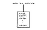 図11は、生成部234が〈enclosure)要素の記載からファイルセグメント名を生成する様子を示した説明図である。図11に示した「drs://targetFile−N」という〈enclosure)要素の記載のうち、「drs」は、当該〈enclosure)要素にファイルの所在でなく特別な情報が記載されていることを示す。  FIG. 11 is an explanatory diagram showing a state where the