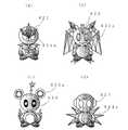 さらに、構成要素画像データ記憶手段533には、図15(b)〜(k)の符号801a〜809a、図16(a)〜(i)の符号811a〜819a、図17(a)〜(d)の符号821a〜824aに示すような構成要素画像のデータが多数記憶されている。Here, the bait image data storage means 531 stores data of four types of bait images such as a parrot 701, sea otter 702, unicorn 703, and