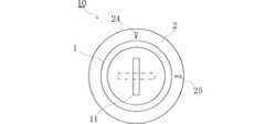 内筒1は、第1の回転位置及び第2の回転位置で停止することができる。一例として、内筒1の前面における鍵穴11の長手方向は、第1の回転位置で垂直になり、第1の回転位置から内筒1を時計方向に90度回転させた第2の回転位置で水平になる。外筒2の前面には、抜き差し位置及び抜け止め位置が、一例として刻印24,25により示されている。  The