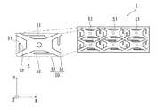 図6に示されるように、本実施の形態における単位構造5及びトップ層30は、夫々が長方形、即ち夫々の対角線に対して非線対称な外形を有している。また、図7に示されるように、浮遊キャパシタ層50についても、単位構造5の対角線に対して非線対称な外形を有している。本実施の形態におけるシート状構造体1は、この単位構造5をX方向及びY方向に連続して繰り返し並べてなる構造を有している。これにより、単位構造5の外形はその対角線に対して非線対称なものとなっている。 As shown in FIG. 6, the