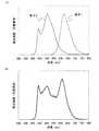 以上では、第1の発光層、第2の発光層、及び第3の発光層に発光性の有機化合物を含む場合を説明したが、発光層は発光性の無機化合物を含んでも良い。つまり第1の発光素子と第2の発光素子を無機のLEDとする。そして、第1の発光および第2の発光のうちいずれか一方は、少なくとも2つのピーク(青色〜緑色の波長領域に2つのピーク)を有する第1の発光スペクトルを示し、他方はそれと異なる位置にピークを有する第2の発光スペクトルを示すことを特徴とする。Although the case where the first light-emitting layer, the second light-emitting layer, and the third light-emitting layer include a light-emitting organic compound has been described above, the light-emitting layer may include a light-emitting inorganic compound. That is, the first light-emitting element and the second light-emitting element are inorganic LEDs. One of the first emission and the second emission shows a first emission spectrum having at least two peaks (two peaks in the blue to green wavelength region), and the other is at a different position. A second emission spectrum having a peak is shown.