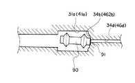 第1シール部91は、ピグ90の両端面から構成され、その円形状の縁部がピグ受け面34b,462bにそれぞれ密着することで、第2副通路34a,462cを封鎖する。  The