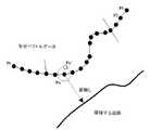 このノード位置での切片方位は、図46に示すように、真北の絶対方位を0度とし、時計回りに0度〜360度の範囲で表示する。ノードpxの切片方位は、ノードpxの上流側に位置する隣接ノードをpx-1、ノードpxの下流側に位置する隣接ノードをpx+1とするとき、ノードpx-1とノードpxとを結ぶ直線の方位θx-1と、ノードpxとノードpx+1とを結ぶ直線の方位θxとを平均し、