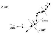 そこで、本発明では、送信側が、デジタル地図上のベクトル形状を特定する座標列情報を含む位置情報を伝達し、受信側が、前記座標列情報によりマップマッチングを実施してデジタル地図上の前記ベクトル形状を同定する位置情報伝達方法において、前記座標列情報に、当該座標列情報に含まれる座標点の切片方位情報を付加して伝達するようにしている。