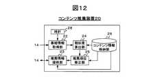 図1は、第1の実施形態における視聴システム10の構成の一例を示すシステム構成図である。視聴システム10は、コンテンツ格納装置13、コンテンツ推薦装置20、複数のSTB(Set Top Box)30、および複数のテレビ16を備える。コンテンツ格納装置13、コンテンツ推薦装置20、およびそれぞれのSTB30は、インターネット等の通信回線14に接続されている。 FIG. 1 is a system configuration diagram illustrating an example of a configuration of a
