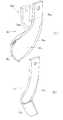 なお、凹状板体爪36を、基部及び先端部を幅狭で中途部を幅広の板体で構成してもよく、また、凹状板体爪36,…の基部に左右一側に屈折する屈折部36eを付加し、爪ホルダ33に取り付けた基部側に対して先端側を左右一側に偏位するように屈折凹状板体爪36fとしてもよい。  The