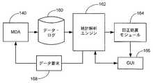 統計解析エンジン162は、第1のパス・フィルタ・スクリーンとして作用するように、あるいはローカルプロセッサ130に依存することができるので、個々のデータ記憶装置100により設定された警報は、コントローラ・レベルで調査及び解析を開始するために統計解析エンジン162への入力として役立つ。この場合、統計解析エンジン162は、現存のデータに対し高級な統計解析を行い、状況を評価して、障害傾向が実際に検出されたか否か、及び、もし行うとすれば、どんな訂正処置が取られるべきかに関する決定に到達するために、関連するデータ記憶装置100により以前は提供されなかった追加データ(すなわち、より大きなサンプルの周波数、他の利用可能ではあるが通常は報告されないパラメータの報告など)を要求する発見的方法を使用してもよい。  Since the