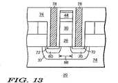 当業者であれば、集積回路20を製造するために別の形態および/あるいは付加的ステップを使用してもよく、また、本発明の広い範囲から逸れることなく、その方法の順序を変えてもよいことは明らかであろう。例えば、ゲート電極の端部に側壁スペーサを形成してもよく、これらのスペーサをさらなるイオン注入のためのマスクとして、あるいは、金属シリサイドのコンタクトをゲート電極から離間するために使用してもよい。  Those skilled in the art may use alternative forms and / or additional steps to manufacture the