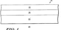 図1乃至11に、本発明の各種実施形態に従うCMOS集積回路20を製造する方法のステップを概略的に示す。「MOSデバイス」という用語は、金属ゲート電極と酸化物ゲート絶縁膜とを持つデバイスを適切に指すが、この用語は、本明細書においては、半導体基板上に位置決めされた(酸化物であろうとその他の絶縁膜であろうと)ゲート絶縁膜上に位置決めされた、(金属であろうとその他の伝導性材料であろうと)伝導性のゲート電極を含む半導体デバイスのことを指す。このような実施形態においては、CMOS集積回路20のほんの一部だけを図示する。CMOSデバイスの製造においての様々なステップが周知であるために、簡素化のため、本明細書においては、多くの従来のステップを単に簡潔に述べるか、周知のプロセスの詳細を説明せずに、全体を省略している。この実施形態においては、集積回路20はCMOS回路であるが、本発明は単チャネル型のMOS回路の製造にも適用することができる。  1-11 schematically illustrate method steps for fabricating a CMOS integrated