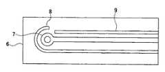 前記問題点の改善策として、例えば、図2に示したように、ガラス基板6の表面に、3つの電極、即ち、作用電極7と対電極8と参照電極9を、印刷技術により形成したプリント電極も知られている。しかしながらかかる電極も、価格が非常に高くなること、繰り返し再使用に限界があることなど問題が多い。また、特許文献5には、電解溶液用の容器(キュベット)の中に分析用電極とアドレス用電極を一体化した構成のものも提案されている。