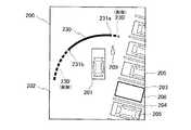 第3実施形態に係る駐車支援装置は、図15に示すように、単一の領域を表す駐車初期位置画像230を表示することを特徴とする。この駐車初期位置画像230は、所定幅の円弧状の曲線によって駐車初期位置を表している。この駐車初期位置画像230の端部231aは、上述した図5に示した駐車初期位置画像207aの端部位置を示しており、駐車初期位置画像230の端部231bは、上述した図5に示した駐車初期位置画像207eの端部を示している。したがって、駐車初期位置画像230は、上述した駐車初期位置画像207と同様に、駐車目標位置に対して垂直の関係となる駐車初期位置から、タイヤ位置中立点において自車両が後退することによって駐車目標位置に到達する駐車初期位置までを表している。  As shown in FIG. 15, the parking assistance apparatus according to the third embodiment displays a parking