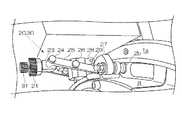 本発明の好ましい実施の形態において、前記ガイド機構用調整機構は、その操作手段(例えば、第1のローレット21)とガイド機構(例えば、上下ローラ2a,2b)とをリンク機構を介して接続し、超音波探傷装置本体のリングに対する保持力を調整する。  In a preferred embodiment of the present invention, the adjustment mechanism for the guide mechanism connects its operating means (for example, the first knurling 21) and the guide mechanism (for example, the upper and