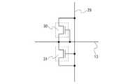 保護回路は画素部17と、走査線入力端子11及び信号線入力端子12との間に配設されている。本形態では複数の保護回路を配設して、走査線13、信号線14及び容量バス線27に静電気等によりサージ電圧が印加され、画素トランジスタ19などが破壊されないように構成されている。そのため、保護回路にはサージ電圧が印加されたときに、共通配線29又は共通配線28に電荷を逃がすように構成されている。The protection circuit is disposed between the