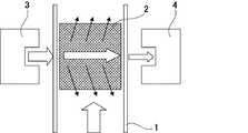 本実施例では、光照射手段3と光強度検出手段4の配置が実施例1と異なる。流路1の外部には、散乱体2の片側に、散乱体2に光を照射する光照射手段3と、散乱体2を反射した光の強度を検出する光強度検出手段4が配置されている。  In the present embodiment, the arrangement of the light irradiation means 3 and the light intensity detection means 4 is different from that in the first embodiment. Outside the