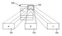 図3は、本実施の形態によるMFP100の表示部123におけるマルチ画面表示の概要を示す図である。MFP100は、表示部123において、同時的に複数の画面を表示する。操作者は、表示部123に対する視方向を変化させることにより、複数の画面の1つを参照することができる。たとえば、図面左右方向に関して第1画面151は、もっとも左に位置する視野角で表示される。第2画面153は、中央の視野角において参照可能である。第3画面155は、もっとも右に位置する視野角で表示される。操作者は、視方向を変化させることにより、同一表示面上にて、上記3種類の画面151、153、155を略同時的に(一切の操作を要さずに)参照することができる。  FIG. 3 is a diagram showing an outline of multi-screen display on