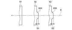 次に、3つの案内リブ61,62,63の形状が図3に示す組み合わせである場合を説明する。この場合でも、インクリボン6(上記図1参照)は、先ず、供給部側案内リブ63と接触しながら所定方向Dへ最初に屈曲案内される。この場合でも、供給部側案内リブ63の供給部側凸部63Aにより、インクリボン6(上記図1参照)の走行は供給部側案内リブ63の中央部側に導かれる。よって、インクリボン6(上記図1参照)の走行ズレが発生しても矯正される。その後、インクリボン6(上記図1参照)は、中間案内リブ62に接触しながら所定方向Dへ屈曲案内される。但し、この場合では、中間案内リブ62には中間凸部62Aが設けられている。ただ、上述した第1ケースでは、その高さS1は、供給部側案内リブ63の供給部側凸部63Aの高さS2よりも低く設定されているため、供給部側案内リブ63の供給部側凸部63Aとの接触によりインクリボン6(上記図1参照)に皺が仮に発生しても、中間案内リブ62の中間凸部62Aにより、その皺を伸ばして矯正させることができる。その後、インクリボン6(上記図1参照)は、排出口側案内リブ61に接触しながら所定方向Dへ屈曲案内される。この場合では、排出口側案内リブ61が凸部のないストレート形状であることから、インクリボン6(上記図1参照)に皺が発生しても、排出口側案内リブ61によって、その皺を伸ばして矯正させることができる。この場合には、皺を矯正する排出口側案内リブ61に近い位置に、皺を矯正する中間案内リブ62が設けられていることから(上記図1参照)、インクリボン6(上記図1参照)に皺が発生しても、印字ヘッドH(上記図6参照)に近い位置にある排出口97(上記図1参照)をそのインクリボン6(上記図1参照)が通過する直前において、そのインクリボン6(上記図1参照)の皺を矯正させることを繰り返して行うことができる。