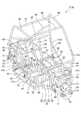 なお、本実施形態では、一対のセンター起立フレーム40及び後アッパクロスメンバ41は、本発明の乗員シート後方の車体フレームを構成するフレームであり、センターロアフレーム32及び後ロアクロスメンバ42は、本発明のロアフレームを構成するフレームであり、フロントアッパフレーム70及び前アッパクロスメンバ44は、本発明の乗員シート前方の車体フレームを構成するフレームである。